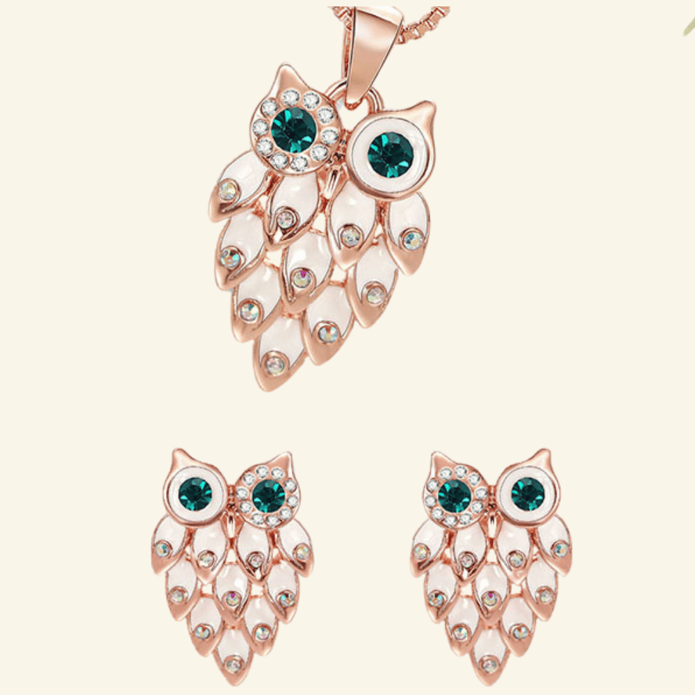 **Voeg een vleugje charme en wijsheid toe aan je sieradencollectie met de Sani™ Uil Set. Bestel nu en straal bij elke gelegenheid!