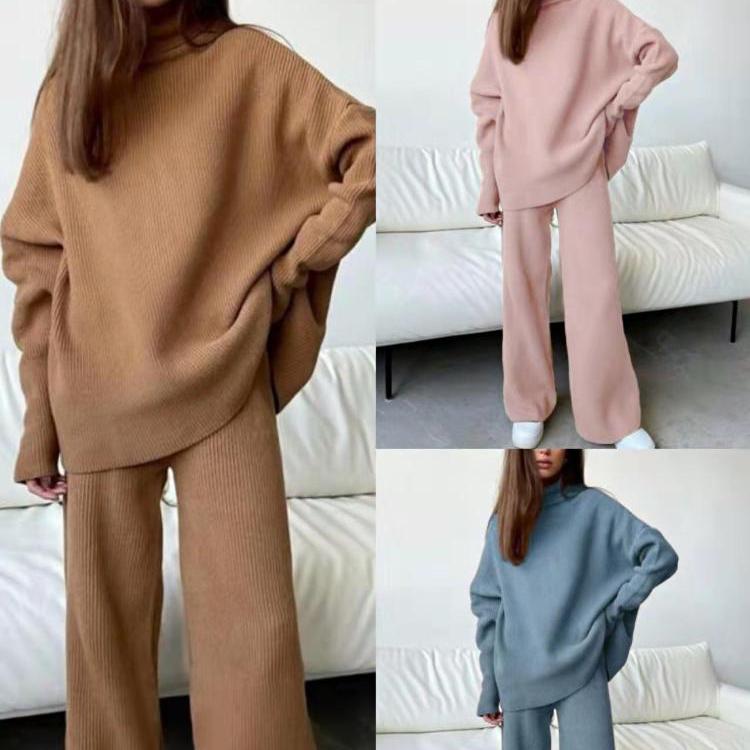 - Stijl: Effen patroon, lang mouwen knitwear top en wijde pijpen broek